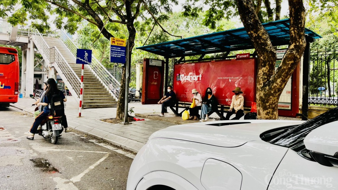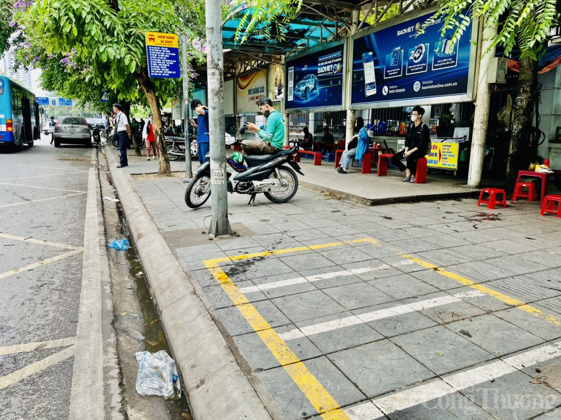 | Nhiều điểm chờ xe buýt biến thành điểm tập kết xe ôm, xe công nghệ… Ảnh: Phương Cúc |