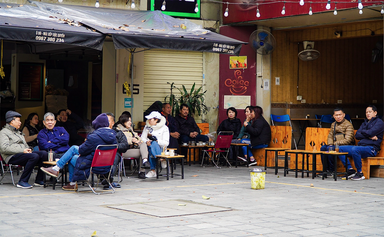 | Sáng 30 Tết nhiều người dân Thủ đô thanh thơi uống cà phê tận hưởng cảm giác thoải mái ngày cuối năm |