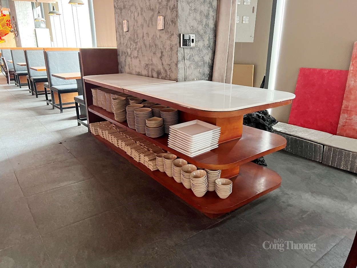 | Những cửa hàng ăn uống nổi tiếng cũng chẳng thể “trụ” lại nơi đây. Máy móc thiết bị được phủ bụi trắng xóa. |