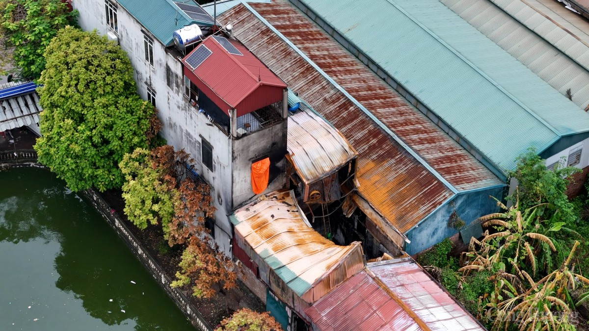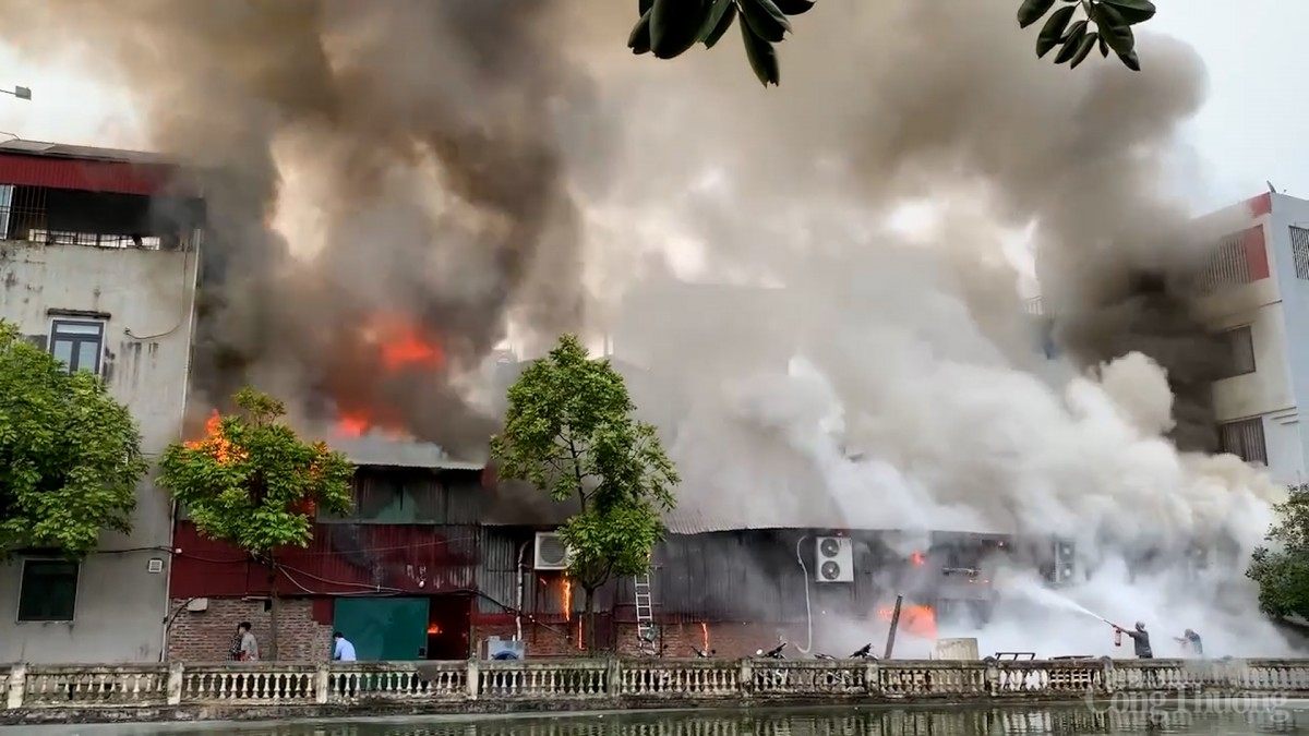 | Toàn cảnh vụ cháy nhà xưởng lan sang nhà dân ở phường Đại Mỗ |
