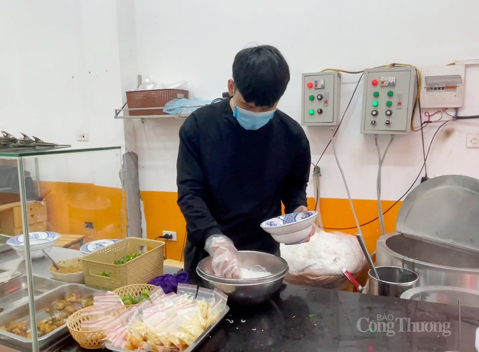 | Chuỗi nhà hàng phở gà Ngọc Tuấn rất vui mừng khi nhận được thông tin hàng quán được bán tại chỗ. Ngoài khâu chuẩn bị nguyên liệu, từ tối qua, cửa hàng đã huy động nhân viên dọn dẹp, lau chùi bàn ghế, rửa bát đũa, sẵn sàng đón khách trong sáng nay. Cửa hàng cũng yêu cầu khách hàng tuân thủ 5K, quét mã QR Code, giữa bàn có vách ngăn và đón khách 50% chỗ ngồi tại cửa hàng, nếu đông quá khách đến sau phải đợi |