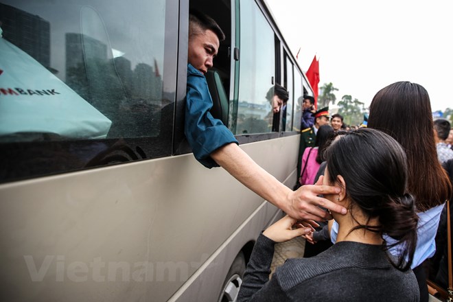 Trong giờ phút chia tay, những tân binh rắn rỏi không giấu được giọt nước mắt