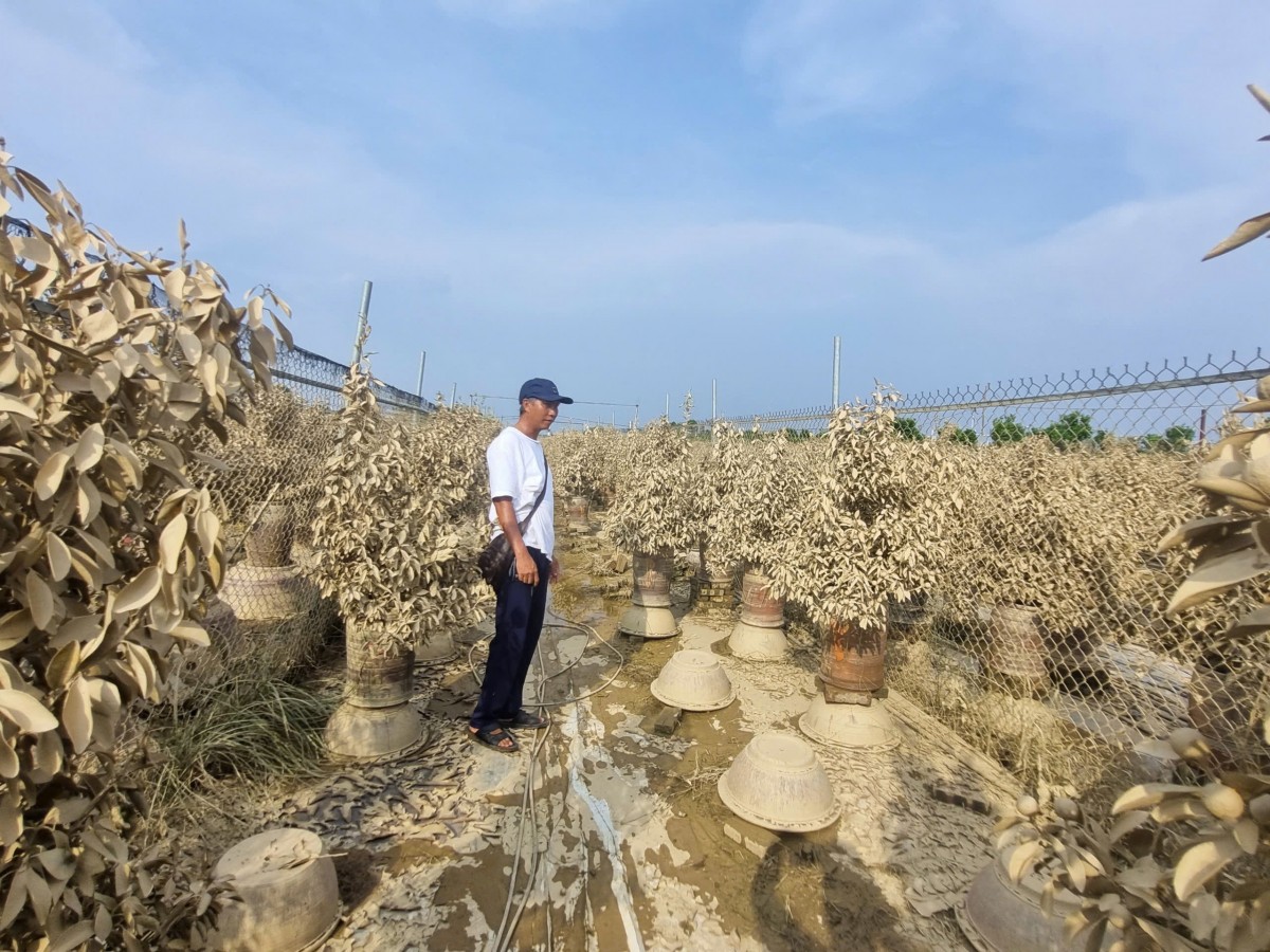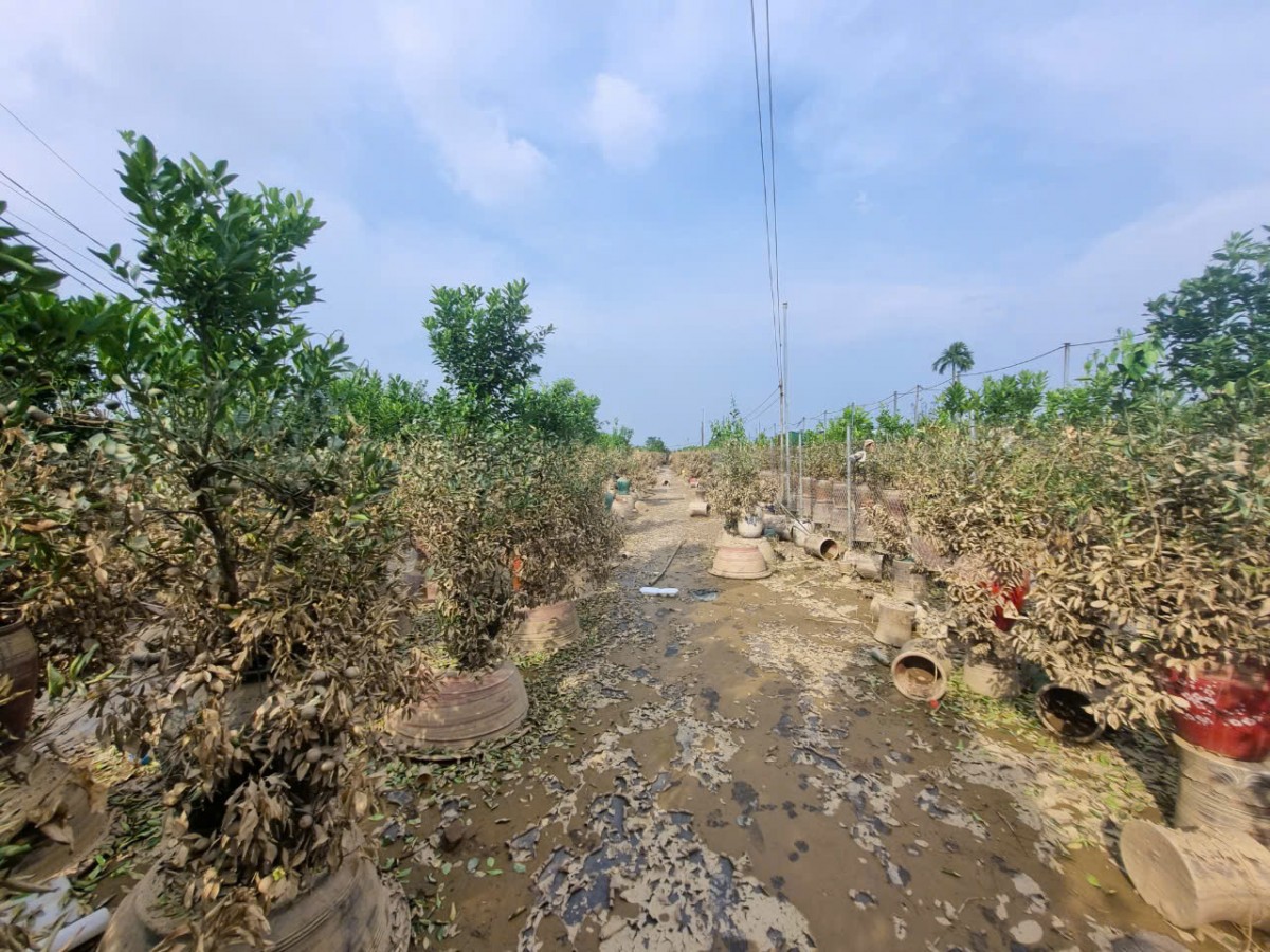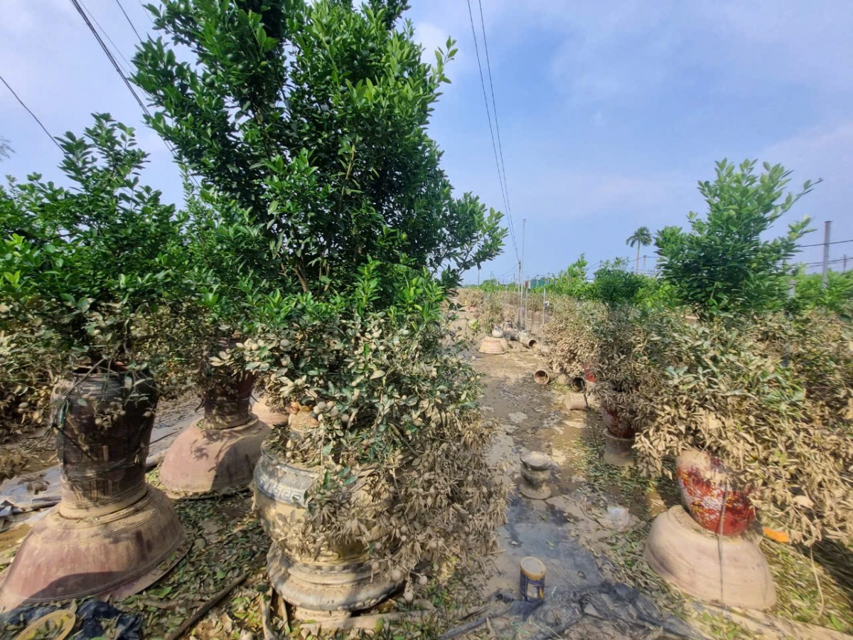 | Nhà vườn Quang Nam có hơn 1.000 cây quất cũng đã bị hỏng toàn bộ do ngập úng. (Ảnh: Văn Thi) |
