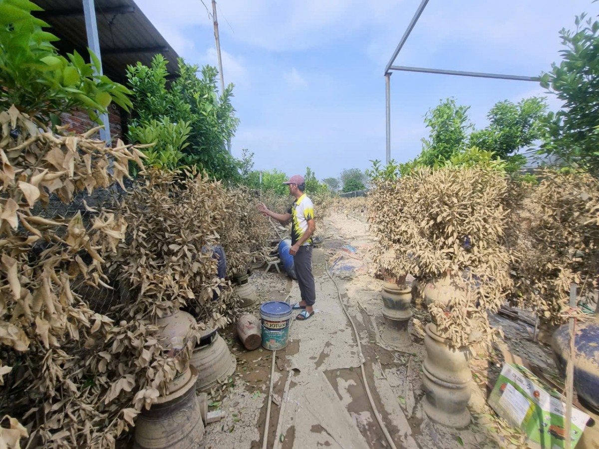 | Chủ một nhà vườn chia sẻ, nếu cây quất này không bị hỏng thì dịp Tết có thể bán được gần 10 triệu đồng, nhưng giờ thì mất hết. (Ảnh: Văn Thi) |