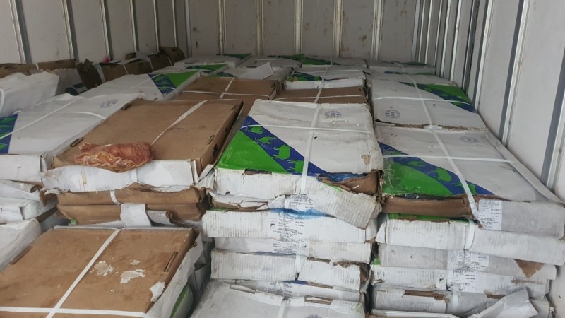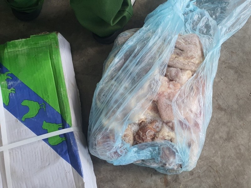 Tại thời điểm kiểm tra, Đoàn kiểm tra phát hiện trong thùng xe ô tô tải đông lạnh có 568 hộp giấy bìa chứa dạ dày lợn đông lạnh, 10 kg/hộp, bên ngoài có dán nhãn chữ nước ngoài, không có nhãn phụ bằng tiếng Việt. Tổng trọng lượng hàng hóa là 5,6 tấn.