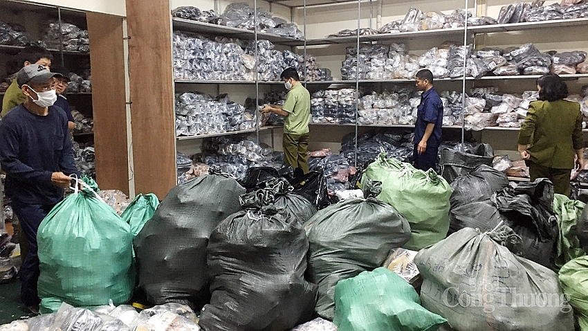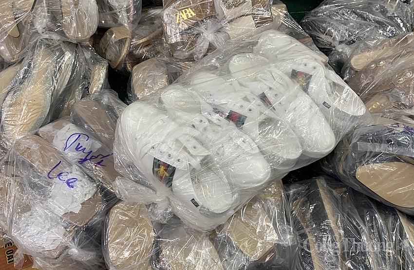 Thông tin với phóng viên tại hiện trường, ông Nguyễn Sỹ Bình - Đội trưởng Đội QLTT số 16 - cho biết, theo nắm bắt địa bàn, Tổ công tác phụ trách địa bàn đã phát hiện đây là nơi tập kết hàng hóa cũng như kinh doanh hàng hóa trên mạng. Cơ sở kinh doanh này hoạt động chủ yếu bằng hình thức online, bán hàng qua zalo và qua một số nền tảng thương mại điện tử. Theo kiểm đếm sơ bộ của lực lượng chức năng, cơ sở này đang chứa trữ hàng chục ngàn sản phẩm là giày, dép gắn nhãn mác của các thương hiệu nổi tiếng như: LV, Gucci, Burberry, Chanel, Dior, Hermes…