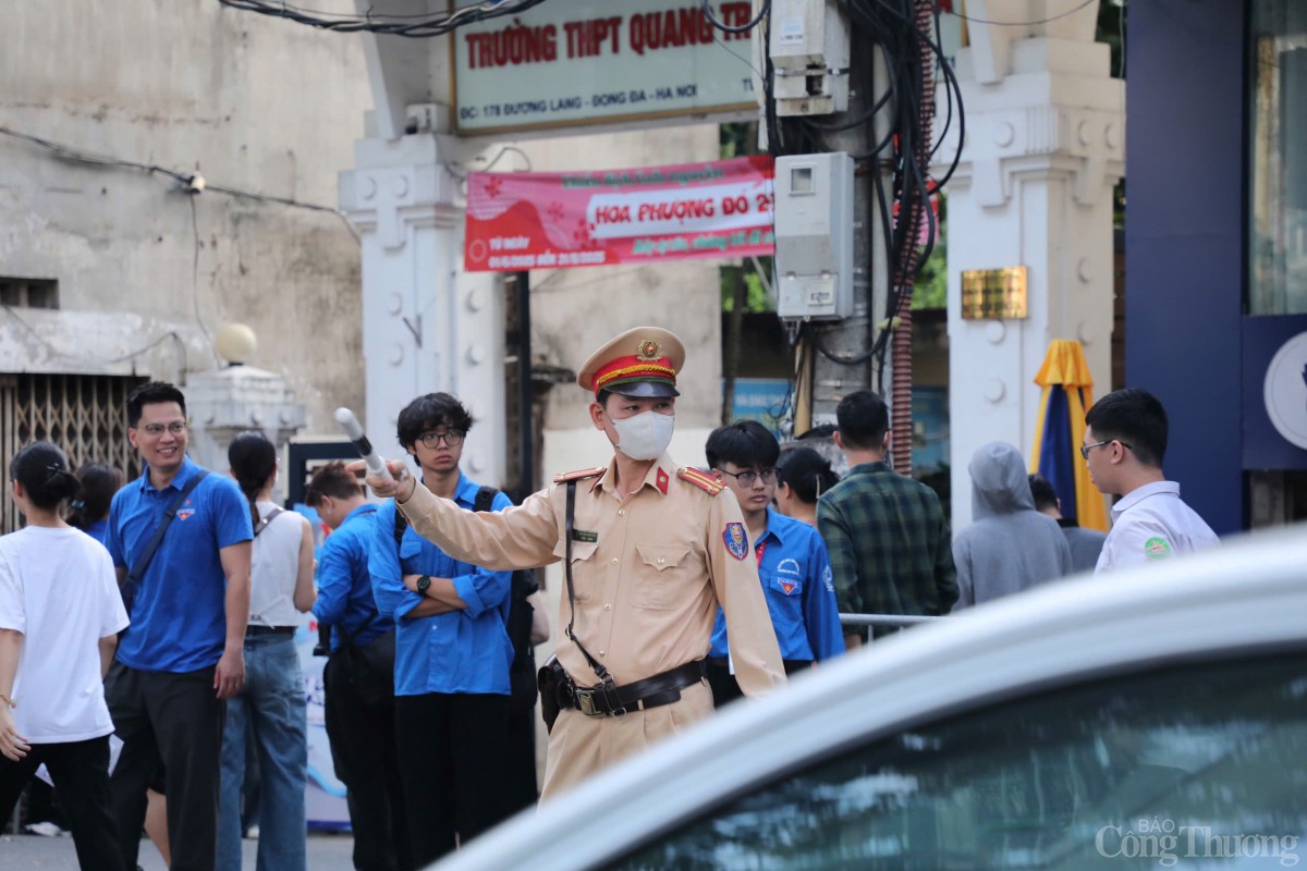 Lực lượng cảnh sát giao thông, công an phường và phòng cháy chữa cháy có mặt từ sớm, phối hợp phân luồng giao thông, đảm bảo an ninh trật tự và phòng chống cháy nổ tại khu vực điểm thi. |