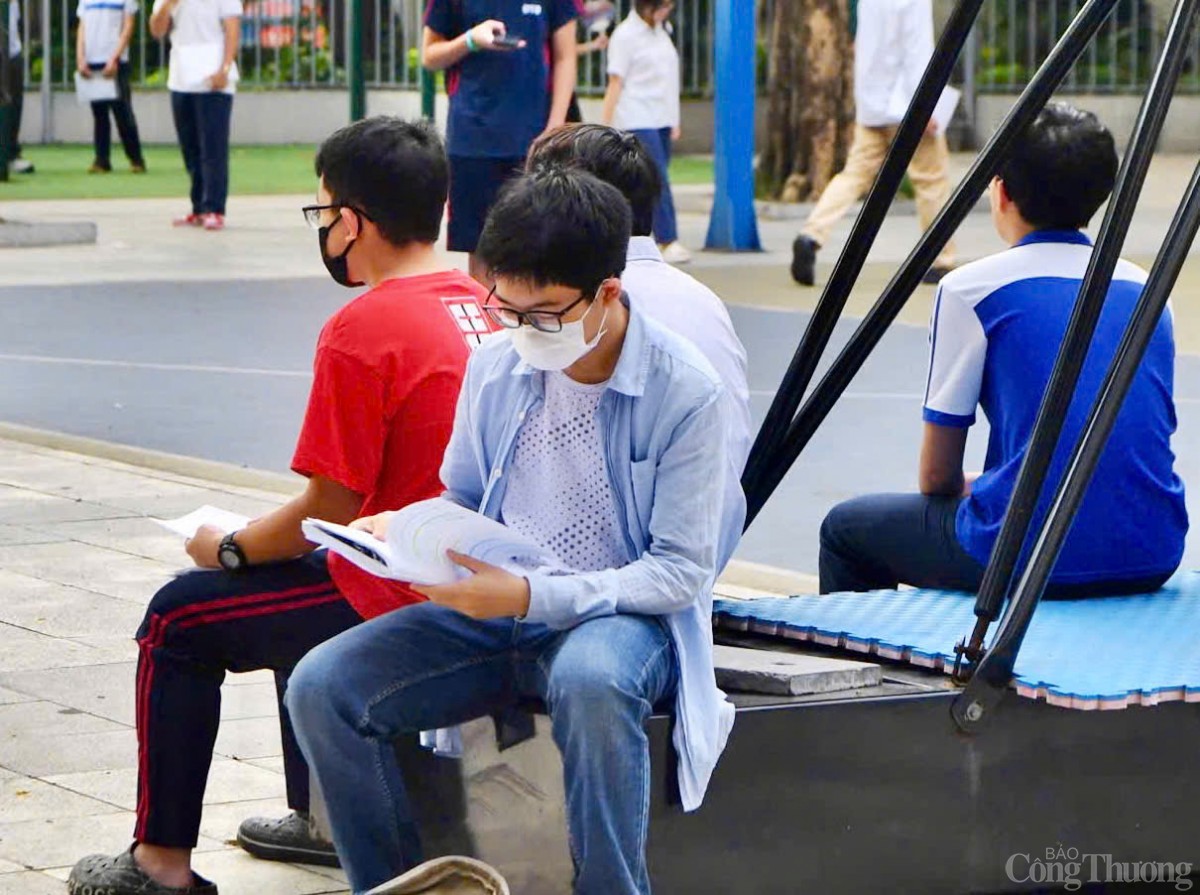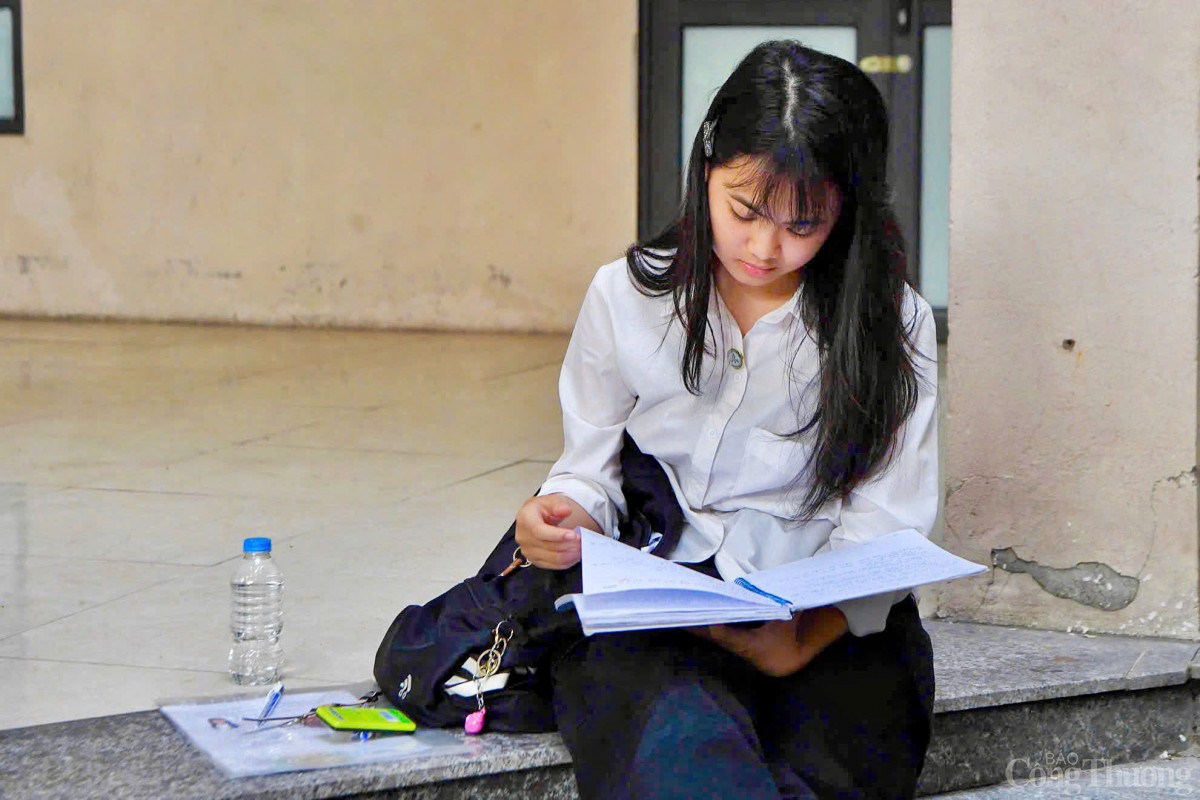 Nhiều thí sinh tranh thủ ôn lại kiến thức môn Ngữ văn. Kỳ thi được xem là “cuộc đua khốc liệt” để giành suất vào trường công lập. |