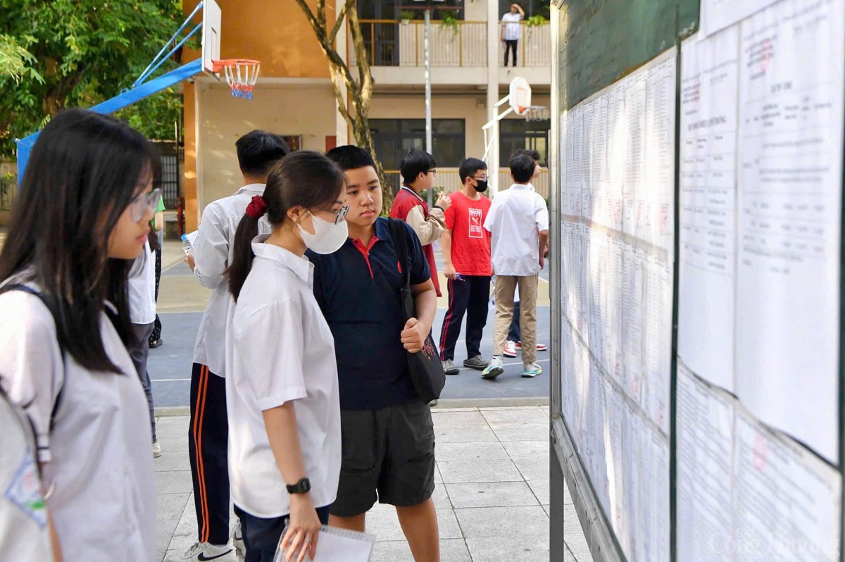 Ghi nhận của phóng viên Báo Công Thương tại điểm thi Trường THCS Hồng Thái, các thí sinh cẩn thận kiểm tra số báo danh trước giờ vào phòng thi. |