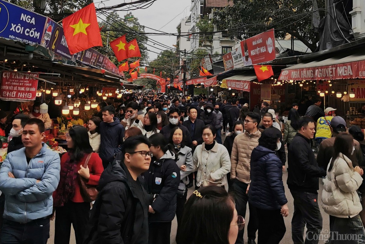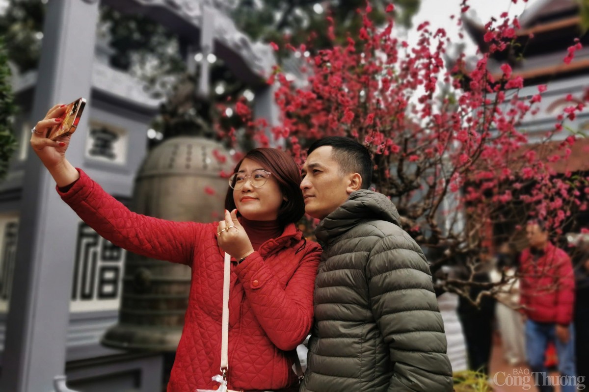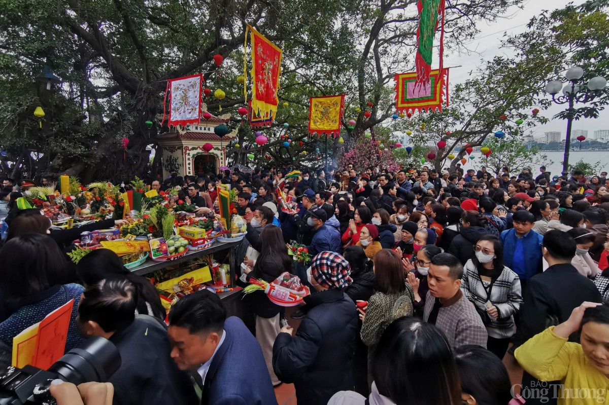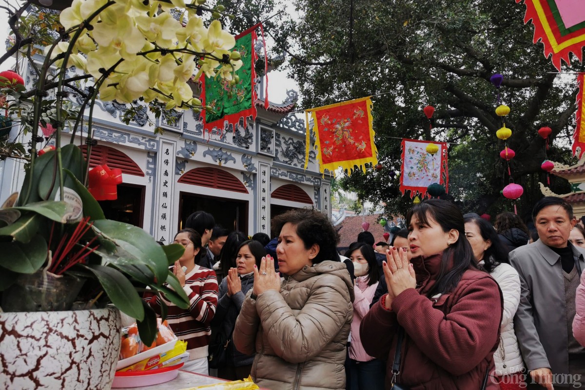 Theo ghi nhận của phóng viên Báo Công Thương, các lối vào cửa chính tới sân và điện thờ luôn chật kín người, càng về trưa, lượng người đổ về đây càng đông khiến lực lượng làm nhiệm vụ giữ gìn trật tự làm việc hết công suất để đảm bảo mỗi người du Xuân được an toàn.