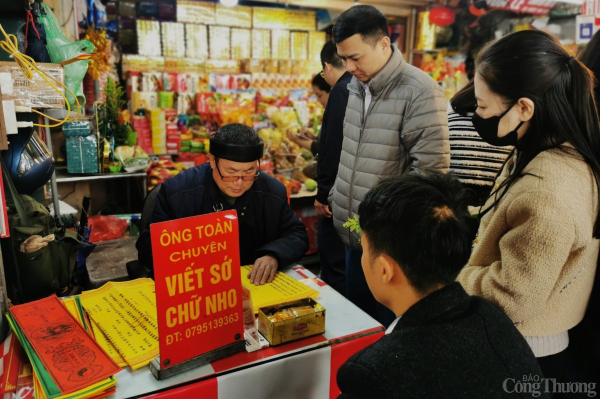 | Người viết sớ tất bật từ sáng tới trưa trước nhu cầu của người đi lễ. |