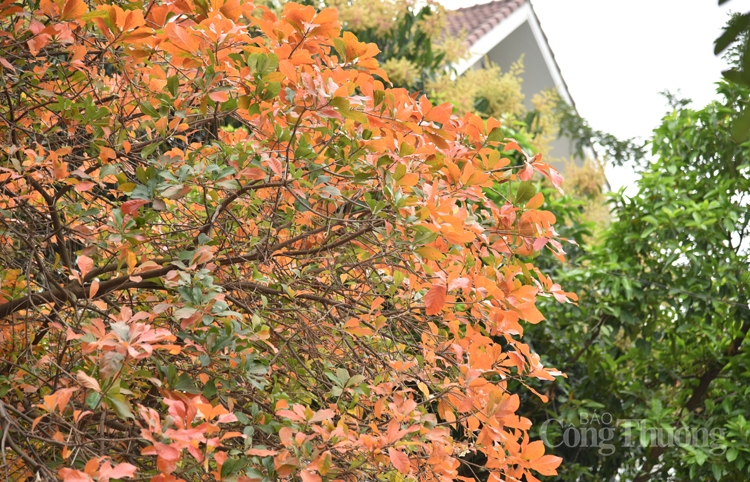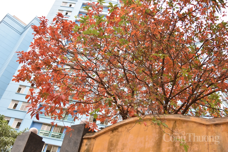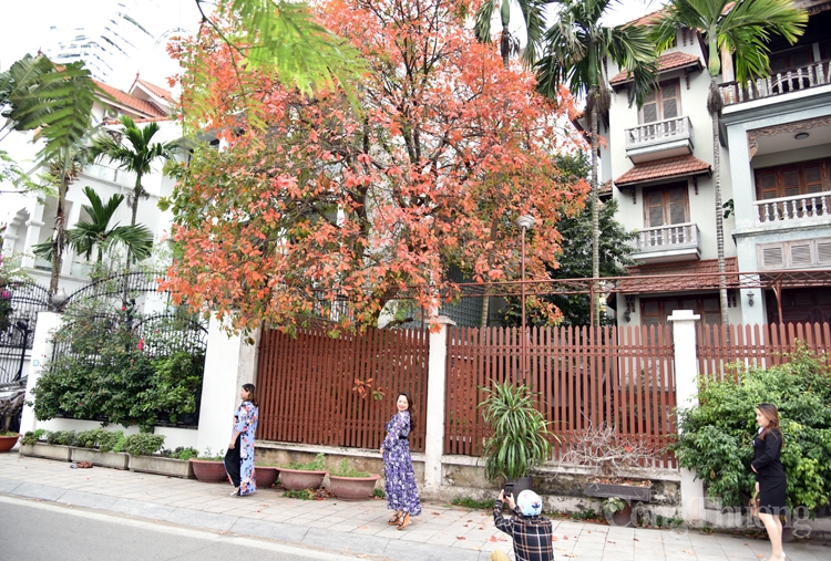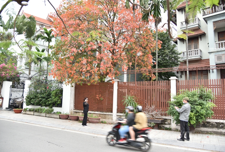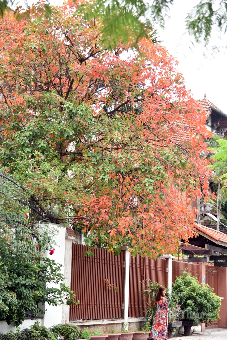 Một số tuyến đường khu vực Cầu Giấy, Hoàng Quốc Việt, Hồ Tây đường Thanh Niên... cũng xuất hiện những màu vàng, đỏ đậm chất trữ tình của cây lộc vừng thay lá.