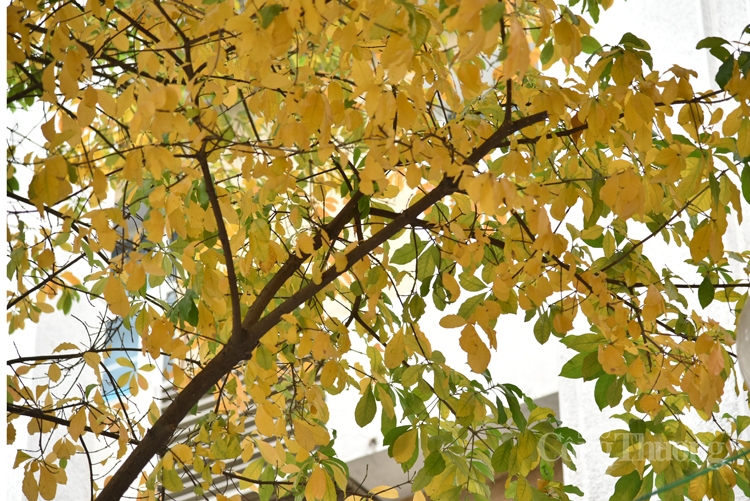 Cây lộc vừng đang dần rũ bỏ lớp áo lá xanh để khoác lên mình tấm áo vàng đầy thơ mộng