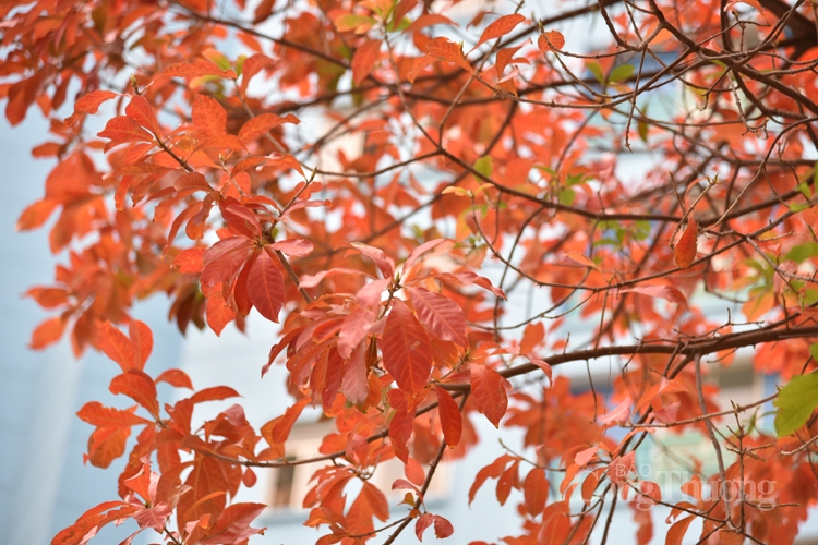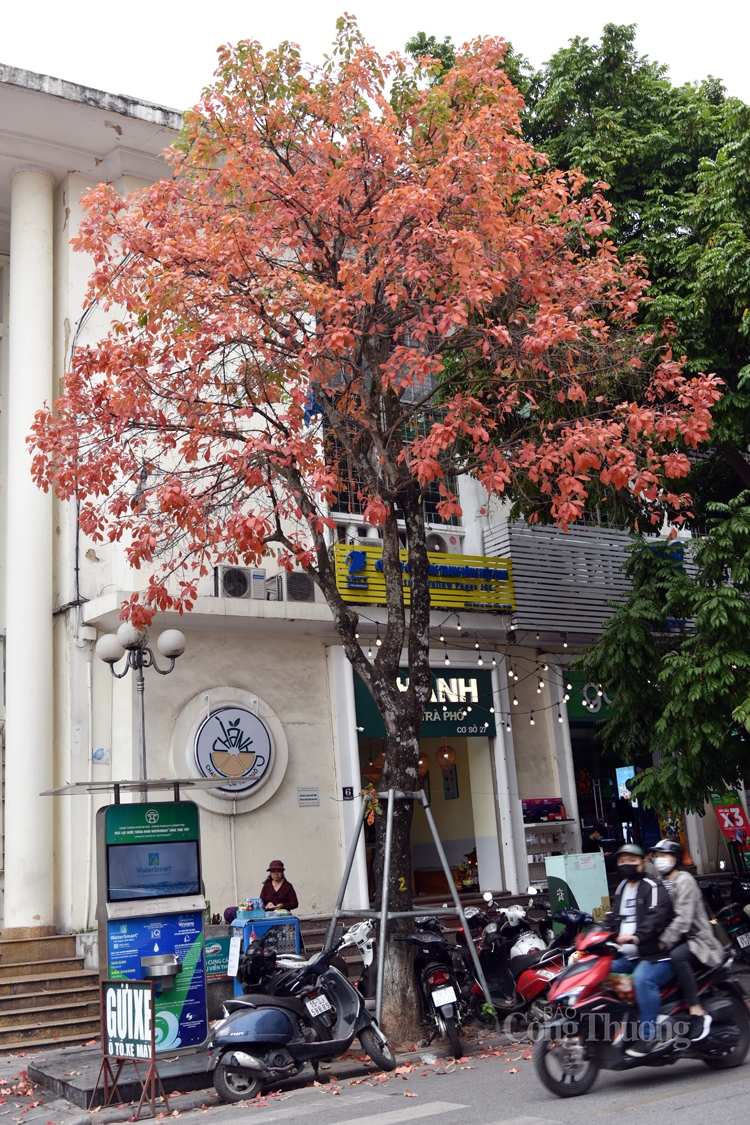 Phố phường Hà Nội những ngày cuối tháng 2 đầu tháng 3 bỗng trở nên đẹp và thơ mộng hơn trước sắc vàng, đỏ của những cây lộc vừng đang mùa thay lá.