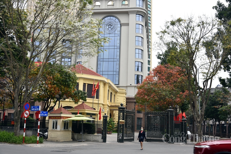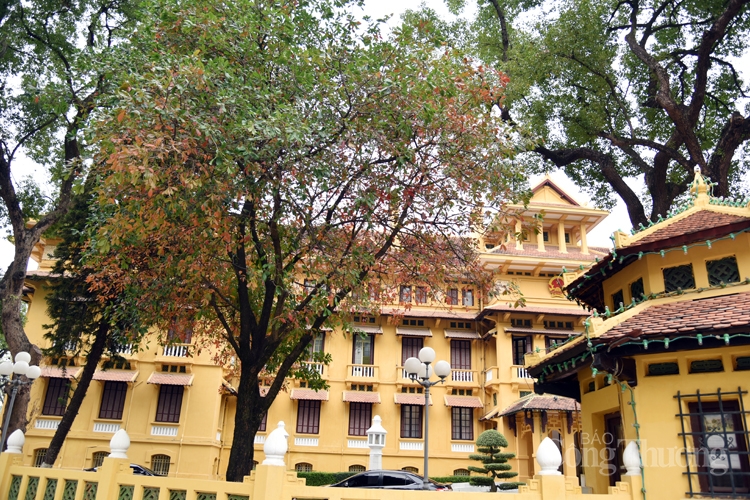 Cây lộc vừng trước Bộ Ngoại Giao đang thời kì thay lá