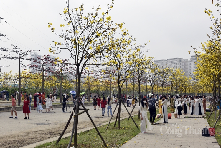 Những ngày gần đây, trên con đường dài gần 500m với hàng nghìn cây phong linh trong Khu đô thị ParkCity (phường La Khê, quận Hà Đông, Hà Nội) đang nở hoa khoe sắc. Hoa phong linh bung tỏa rực sắc vàng, thu hút rất đông du khách đến tham quan và lưu giữ cho mình những bức hình đẹp.