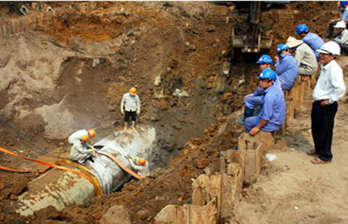 | Tuyến đường ống nước sạch sông Đà số 1 thường xuyên bị vỡ |