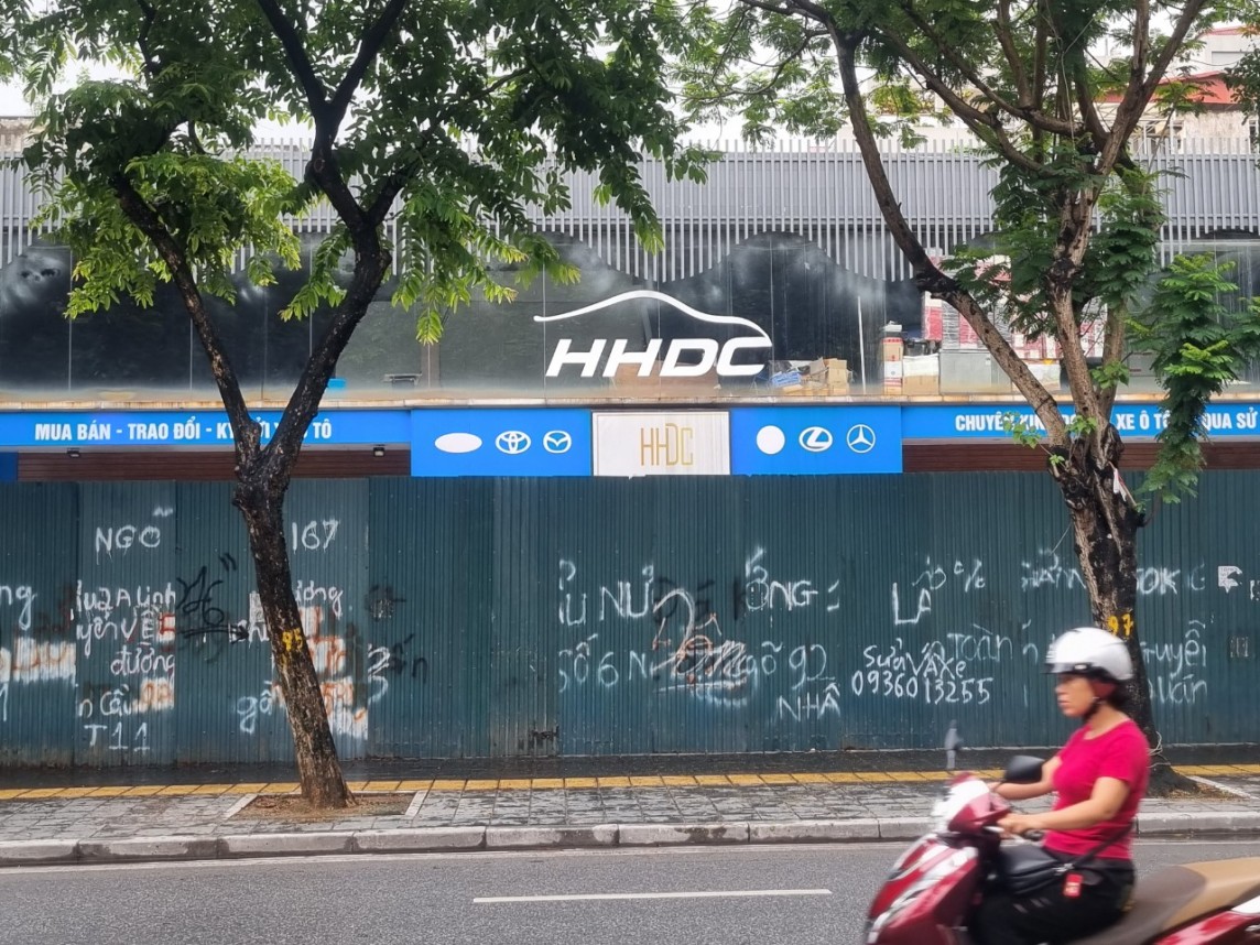 | Khu vực trước kia đã bị cưỡng chế giờ được dùng làm nơi kinh doanh ô tô. (Ảnh: Phú Quý) |