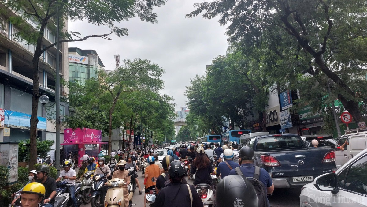 | ... ùn tắc kéo dài trên cả tuyến phố Thái Hà |