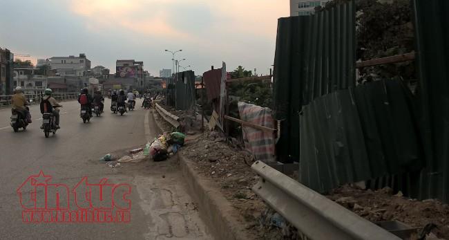 Tình trạng xả rác bừa bãi tại cầu vượt nút giao Hoàng Hoa Thám - Văn Cao