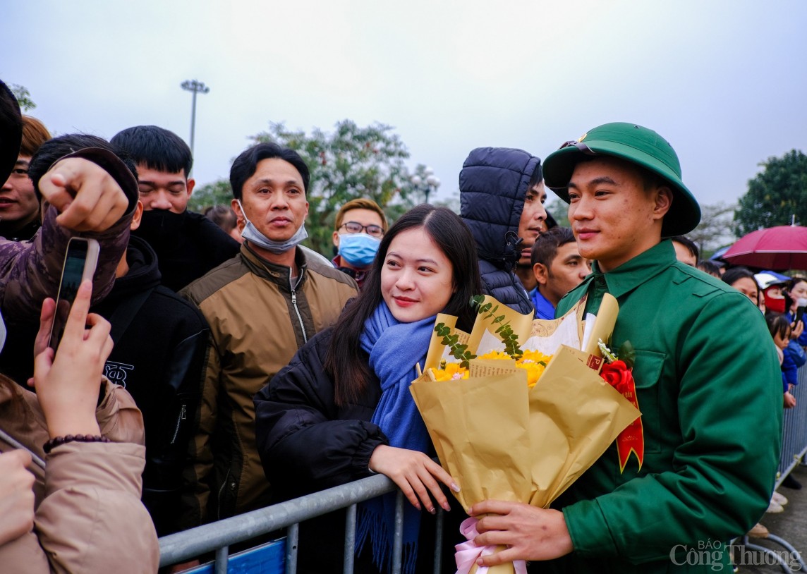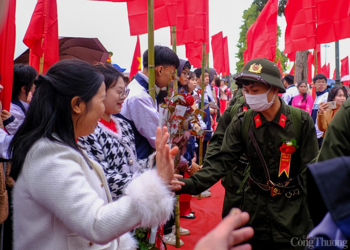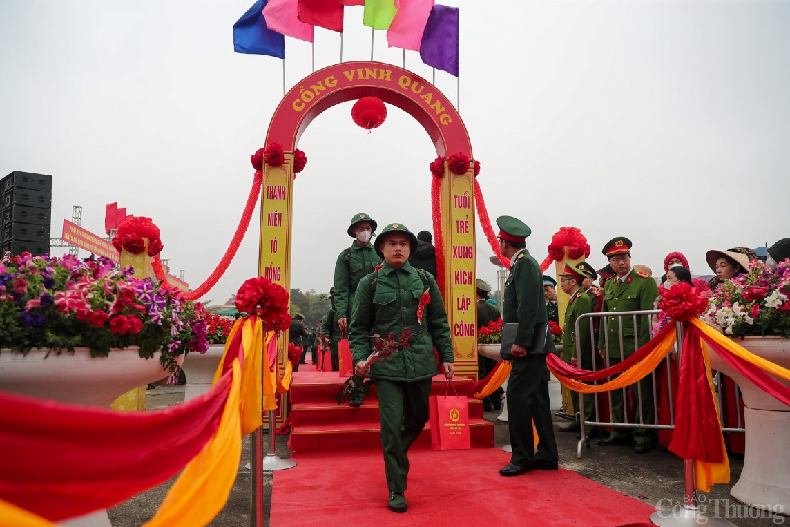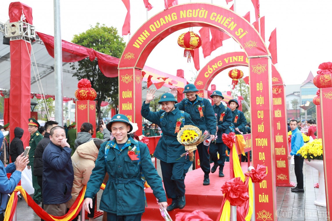 | Trong không khí nô nức của ngày hội tòng quân, các tân binh rạng ngời lên đường nhập ngũ |