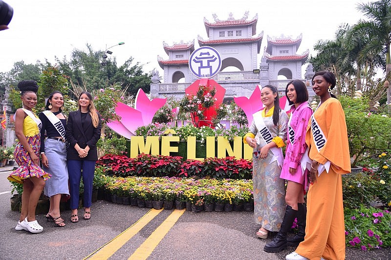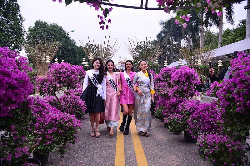Các thí sinh Hoa hậu Du lịch thế giới 2022 tại Lễ hội hoa Mê Linh