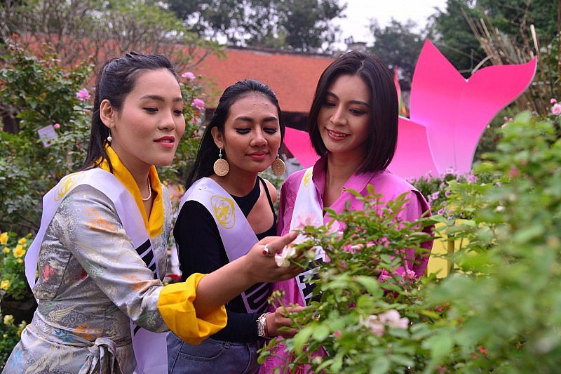 | Thí sinh Miss Tourism World 2022 khoe sắc tại Lễ hội hoa Mê Linh |