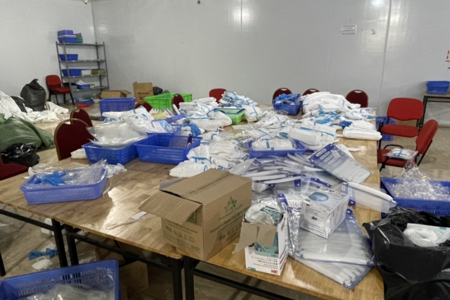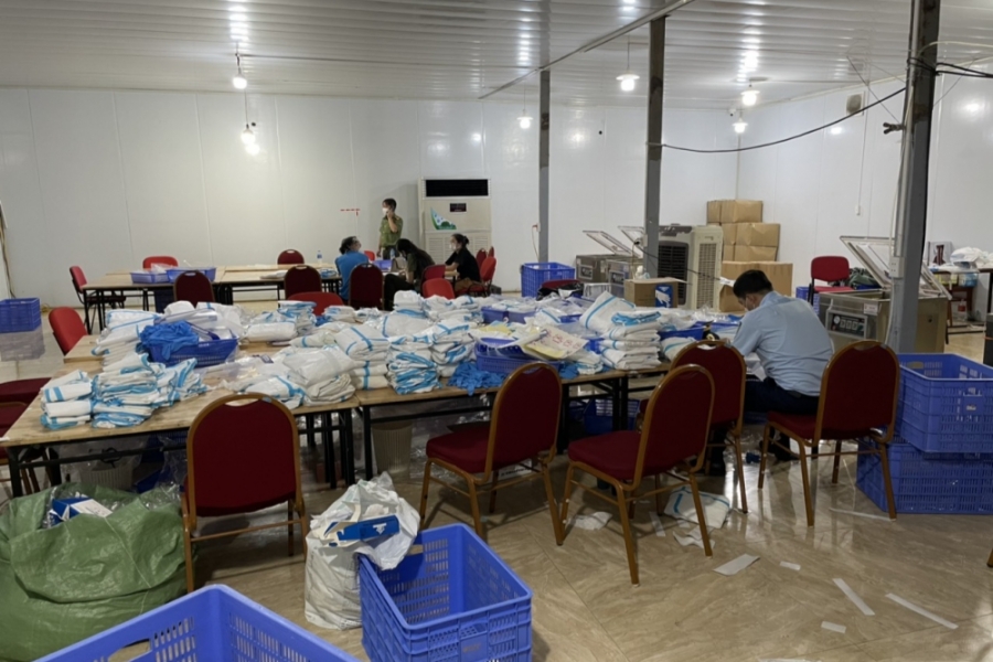 Qua kiểm tra, lực lượng chức năng phát hiện tại cơ sở có 20.880 chiếc khẩu trang nhãn hiệu 3M và 11.490 chiếc khẩu trang nhãn hiệu KN95; 1.130 bộ bảo hộ y tế (không nhãn mác, không xuất xứ): 550 chiếc áo liền quần bảo hộ y tế (không nhãn mác, không xuất xứ); 5.500 bao chân bảo hộ y tế (không nhãn mác, không xuất xứ); 2.900 bộ bảo hộ y tế nhãn giấy có chữ sản xuất bởi Công ty CP đầu tư Thiện Bình, NSX:08/2021; 347 chiếc găng tay cao su không nhãn mác; 40 chiếc giá phơi quần áo (nhãn chữ nước ngoài, made in China); 60 máy sấy quần áo (nhãn chữ nước ngoài, made in China). Toàn bộ hàng hoá chưa xuất trình được hoá đơn, chứng từ theo quy định.