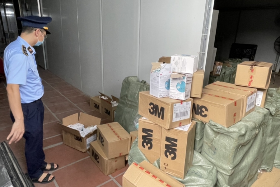 | Lực lượng chức năng phát hiện tại cơ sở có 20.880 khẩu trang nhãn hiệu 3M có dấu hiệu giả mạo nhãn hiệu |