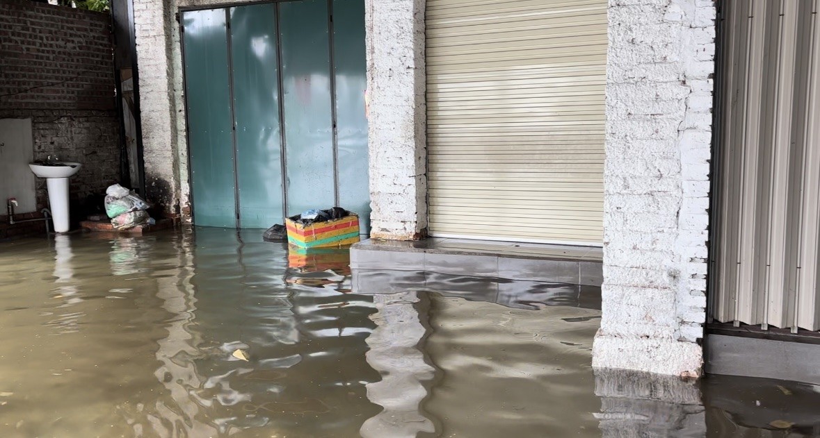 | Tại một số nhà đã xảy ra tình trạng nước tràn vào tầng hầm - Ảnh: Hán Hiển |