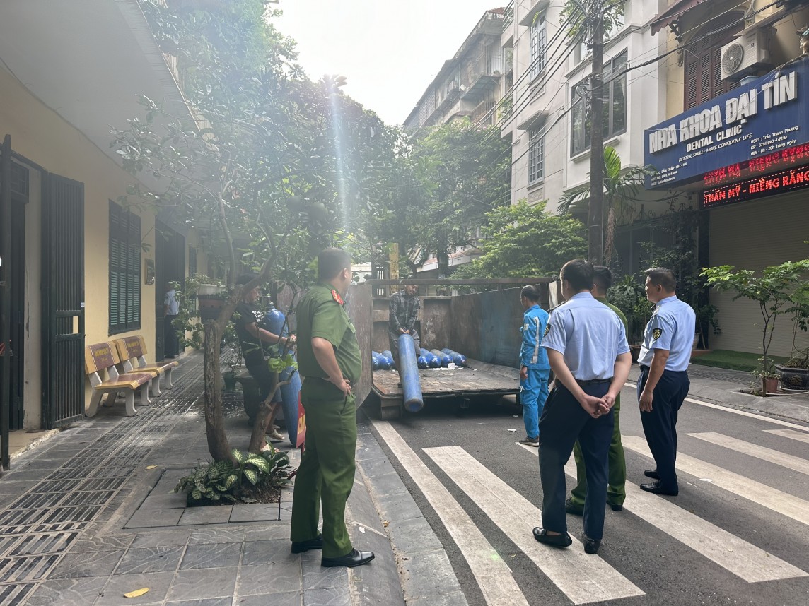Theo đó, ngày 2/7/2024, Đội Quản lý thị trường số 5, Cục Quản lý thị trường thành phố Hà Nội phối hợp Công an Quận Hai Bà Trưng tổ chức giám sát tiêu hủy 398 bình khí cười N2O không rõ nguồn gốc xuất xứ với trị giá hàng hóa vi phạm: 387.600.000 đồng.