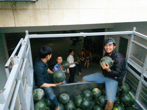 | Người dân Hà Nội hưởng ứng việc mua dưa hấu ủng hộ đồng bào Quảng Nam |