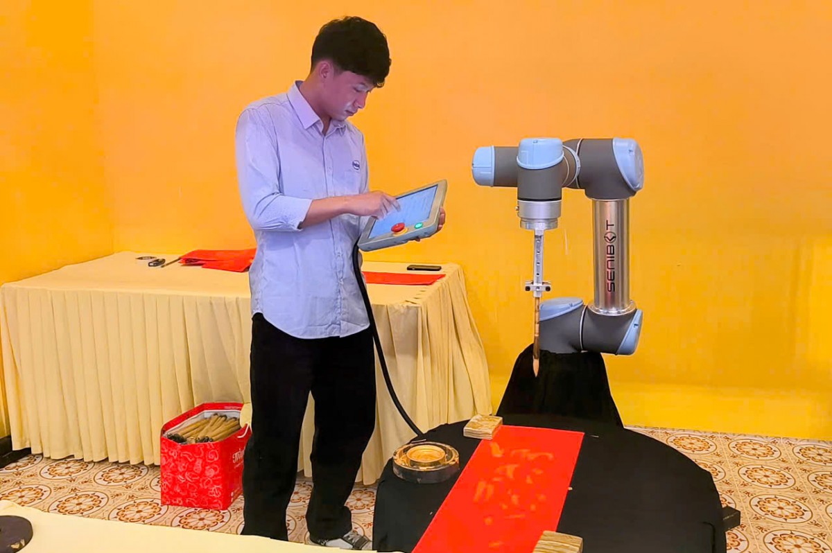 Senibot- đơn vị đưa robot có chức năng viết thư pháp vào hoạt động cho biết, robot này được nhập khẩu trực tiếp với giá lên tới trên 700 triệu đồng. Robot được lập trình sẵn tiếng Việt, có thể viết các bức thư pháp bằng tiếng Việt với nội dung do du khách lựa chọn. Đây là sản phẩm của Universal Robots là nhà sản xuất cánh tay robot cộng tác công nghiệp linh hoạt nhỏ hơn (cobot) có trụ sở tại Odense , Đan Mạch. Từ năm 2015, công ty thuộc sở hữu của nhà thiết kế và sản xuất thiết bị kiểm tra tự động Teradyne của Mỹ. Những nét vẽ và các mẫu thư pháp có thể được điều chỉnh để phù hợp với nhu cầu của từng người.