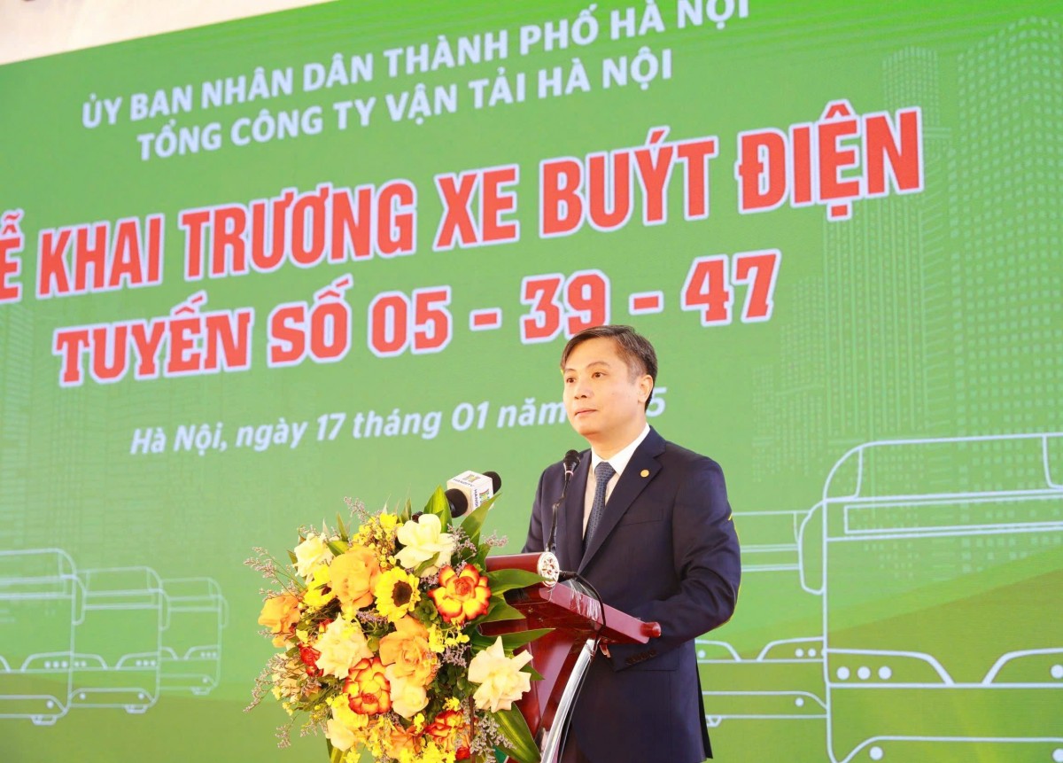 Báo cáo quá trình triển khai dự án đầu tư xe buýt điện tại lễ khai trương, ông Nguyễn Thanh Nam, Tổng Giám đốc Transerco cho biết: Thực hiện chỉ đạo của Thành ủy, UBND thành phố về triển khai Quyết định số 876/QĐ-TTg ngày 22/7/2022 của Thủ tướng Chính phủ phê duyệt chương trình hành động về chuyển đổi năng lượng xanh, giảm phát thải khí me-tan và carbon trong ngành giao thông vận tải và quyết liệt triển khai các giải pháp để khắc phục tình trạng ùn tắc giao thông, kiểm soát ô nhiễm không khí ở Thủ đô theo tinh thần chỉ đạo của đồng chí Tổng Bí thư tại buổi làm việc với Thành ủy Hà Nội, Tổng công ty Vận tải Hà Nội, với ý thức, vai trò của một đơn vị chủ lực trong lĩnh vực giao thông công cộng Thủ đô, đã nỗ lực triển khai thực hiện dự án chuyển đổi xe buýt điện cho 3 tuyến xe buýt theo chủ trương của thành phố trong thời gian ngắn nhất.