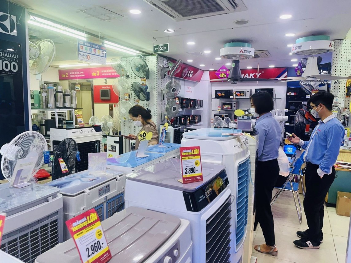 | Theo khảo sát của phóng viên tại một số siêu thị điện máy trên địa bàn quận Cầu Giấy, Hai Bà Trưng và Hoàng Mai, nhiều người đổ xô đi mua sản phẩm làm mát như quạt hơi nước, quạt điều hòa. |
