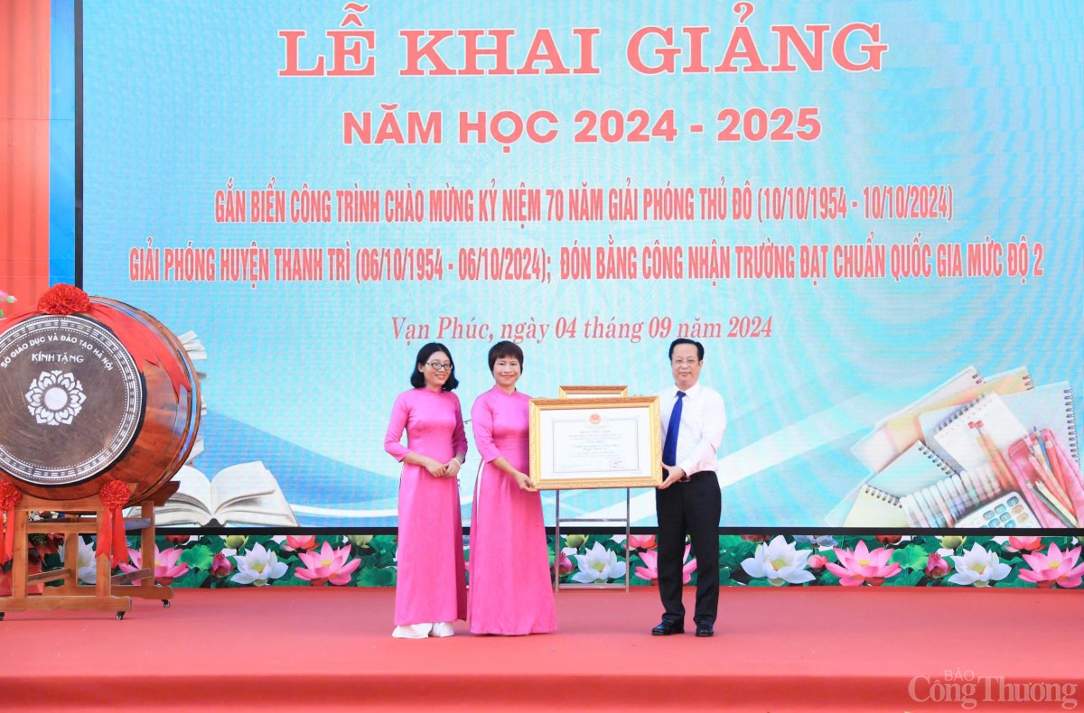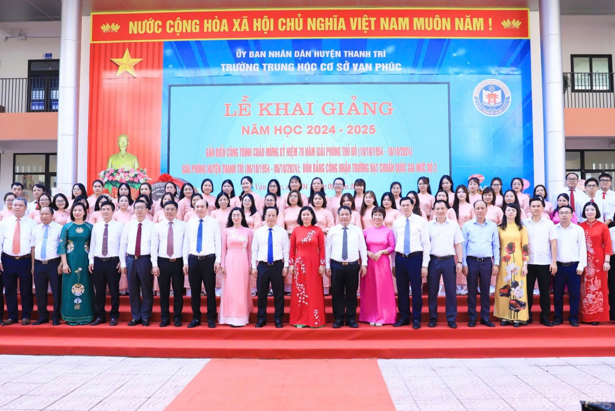 Phó Bí thư Thường trực Thành ủy Hà Nội Nguyễn Thị Tuyến dự lễ khai giảng năm học mới tại trường Trung học cơ sở Vạn Phúc, huyện Thanh Trì; gắn biển Công trình chào mừng Kỷ niệm 70 năm Giải phóng Thủ đô (10/10/1954-10/102024), giải phóng huyện Thanh Trì (06/10/1954-06/10/2024) và đón Bằng công nhận “Trường đạt chuẩn Quốc gia mức độ 2”. Cùng dự có Giám đốc Sở Giáo dục và Đào tạo Trần Thế Cương cùng đại diện các ban Đảng Thành ủy, Văn phòng Thành ủy; các sở, ban, ngành thành phố và đại biểu huyện Thanh Trì...