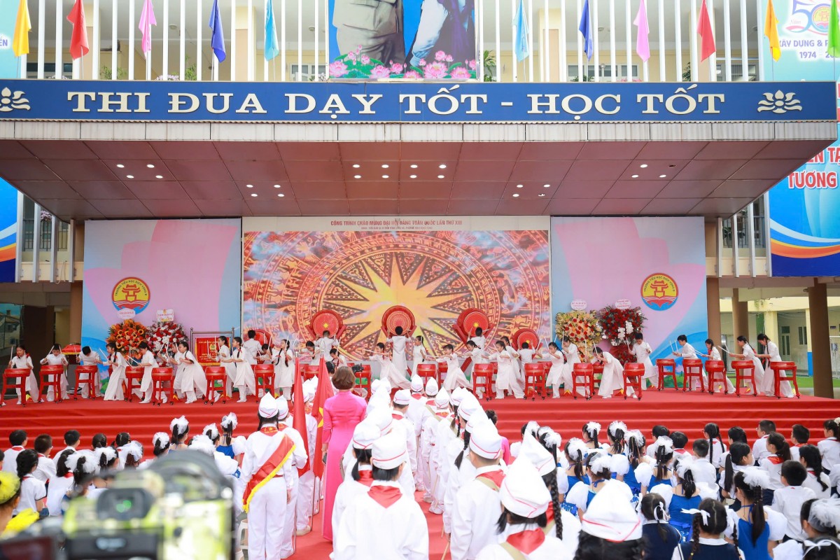 Phát biểu tại buổi lễ, bà Nguyễn Thanh Huyền - Hiệu trưởng nhà trường cho biết, để ngôi trường có được diện mạo khang trang, tươi đẹp như hiện nay là một câu chuyện dài. Trong đó phải kể đến những đóng góp, cống hiến của biết bao thế hệ nhà giáo với niềm tin, khát vọng về một ngôi trường khang trang, một nền giáo dục chất lượng.