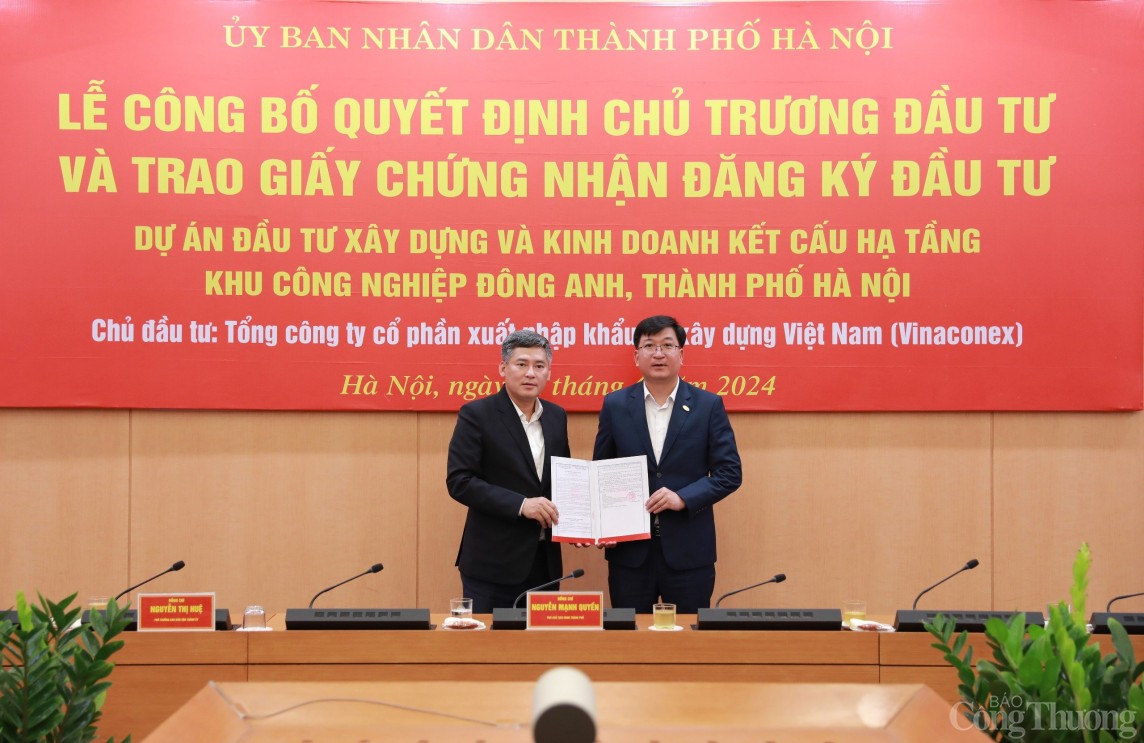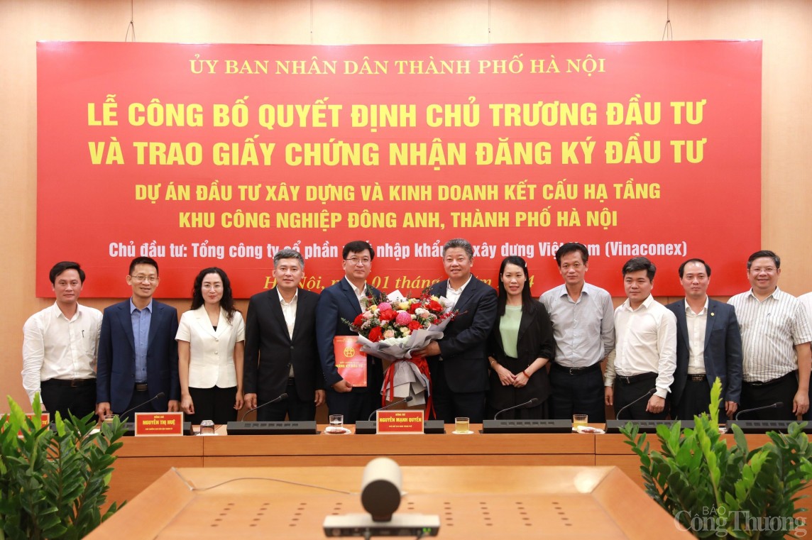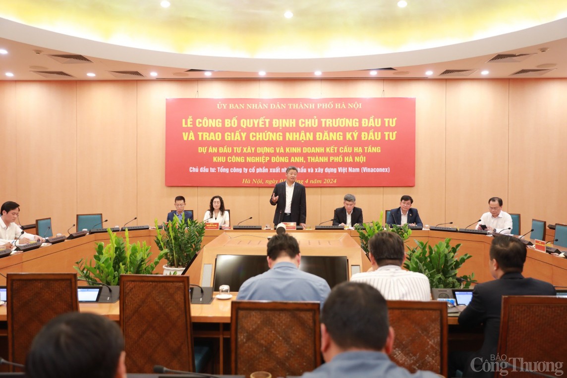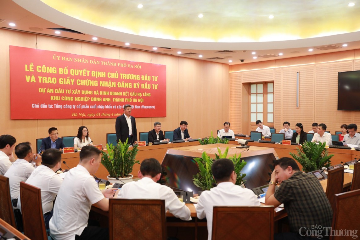 Chiều 1/4, UBND TP. Hà Nội tổ chức Hội nghị Công bố quyết định chủ trương đầu tư và trao Giấy chứng nhận đăng ký đầu tư Dự án Đầu tư xây dựng và kinh doanh kết cấu hạ tầng Khu công nghiệp Đông Anh, huyện Đông Anh (Khu công nghiệp Đông Anh).