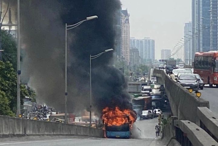 Sự việc xảy ra vào khoảng 14 giờ ngày 23/6, tại đoạn đường dẫn lên vành đai 3 trên cao, thuộc địa bàn giáp ranh giữa quận Cầu Giấy và Thanh Xuân. Chiếc xe buýt mang BKS 29B-193.xx đang chạy từ hướng cầu Mai Dịch đi cầu Thăng Long khi đi đến dốc cầu, lối dẫn từ Phạm Hùng lên vành đai 3 trên cao bất ngờ bốc cháy dữ dội, cột khói bốc cao hàng chục mét.