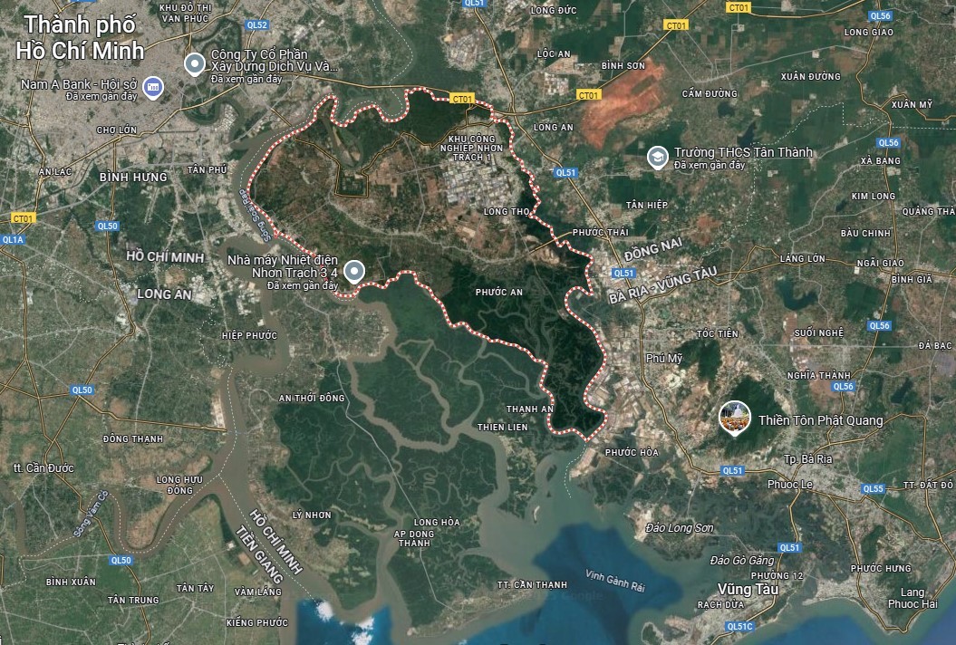 | Nhơn Trạch có vị trí địa chiến lược, cầu nối giữa TP. Hồ Chí Minh và Bà Rịa - Vũng Tàu - (Ảnh: Google Maps) |