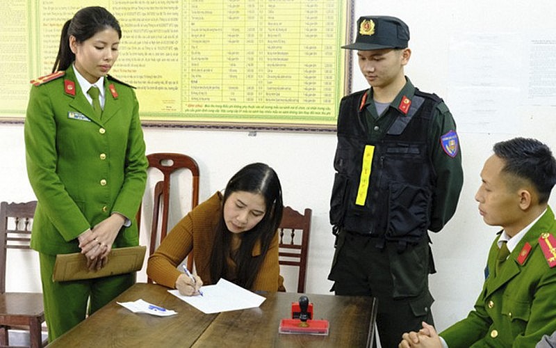| Đối tượng Hoàng Thị Thanh Xuân tại cơ quan điều tra. |