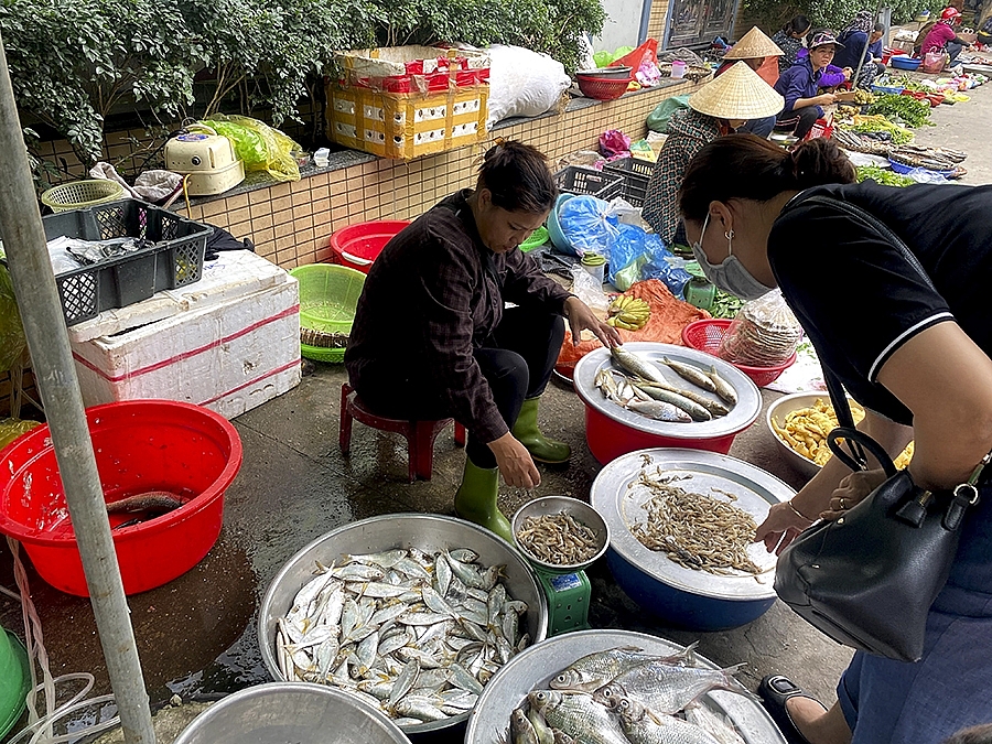 | Tại các chợ dân sinh trên địa bàn, người dân đến chợ đông hơn ngày thường |