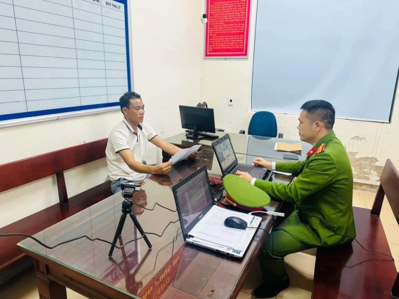 | Đối tượng Trần Văn Song tại cơ quan công an |
