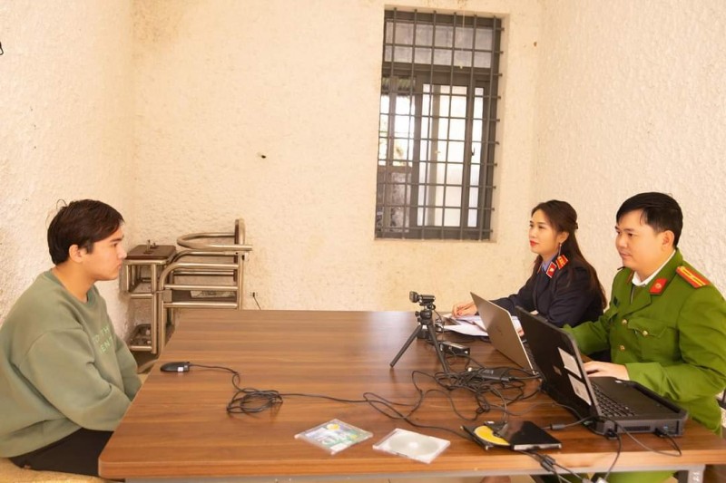 | Đối tượng Nguyễn Quang Nhật tại cơ quan công an |