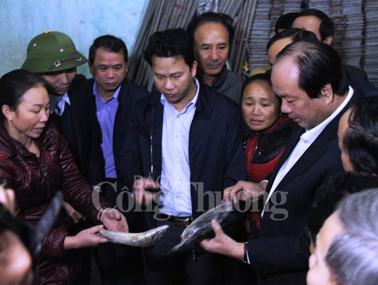 Trao đổi với các đại lý thu mua, Thứ trưởng Bộ Công Thương Đỗ Thắng Hải cho biết, Bộ Công Thương đã trao đổi với địa phương về giá đền bù và chủ trương hỗ trợ tiêu thụ hải sản an toàn.