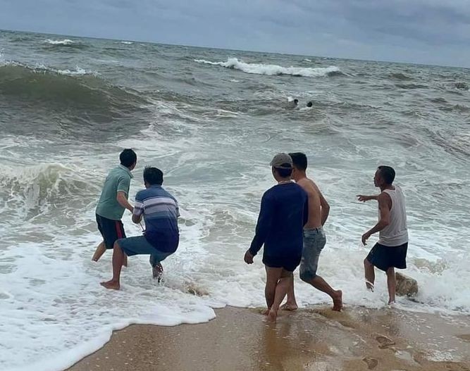 | Quá trình người dân và chính quyền ứng cứu đưa 3 ngư dân vào bờ an toàn |