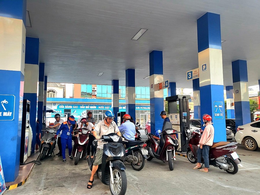 Ghi nhận vào 17h30 phút chiều 31/08, tại cửa hàng xăng dầu số 31, đường Trần Phú, TP. Hà Tĩnh thuộc Công ty Xăng dầu Hà Tĩnh. Thời điểm này, rất nhiều phương tiện gồm ô tô, xe máy đến đây đổ xăng, dầu.