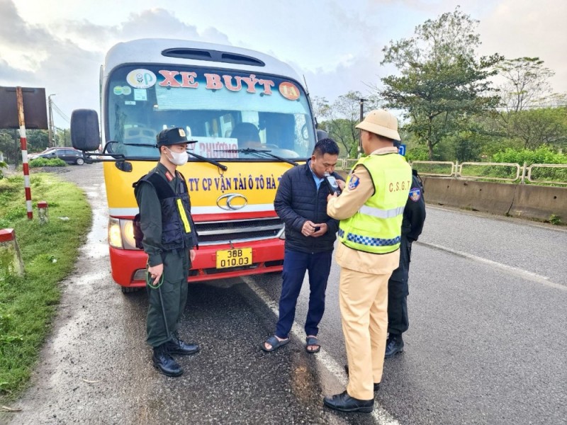 Thời điểm này, lực lượng chức năng phát hiện xe bus của Công ty CP Vận tải ô tô Hà Tĩnh có BKS 38B-010.03 điều khiển chạy quá tốc độ 69/50km/h và có nhiều biểu hiện nghi vấn.