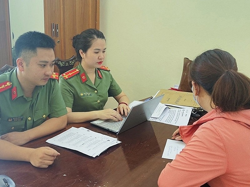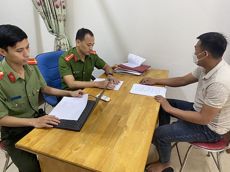 | Cán bộ Phòng An ninh Chính trị nội bộ làm việc với N.H.T. |