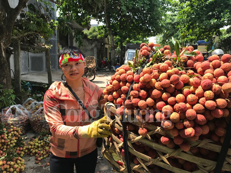 Trong cái nắng gay gắt đầu tháng 6, các hộ trồng vải ở huyện Thanh Hà đang đẩy mạnh thu hoạch quả vải. Năm nay vải được mùa, lại có mẫu mã đẹp nên cả người mua và người bán đều phấn khởi, những xe thồ vải của người dân chở ra các điểm mua buôn đều được cân hết ngay lập tức.